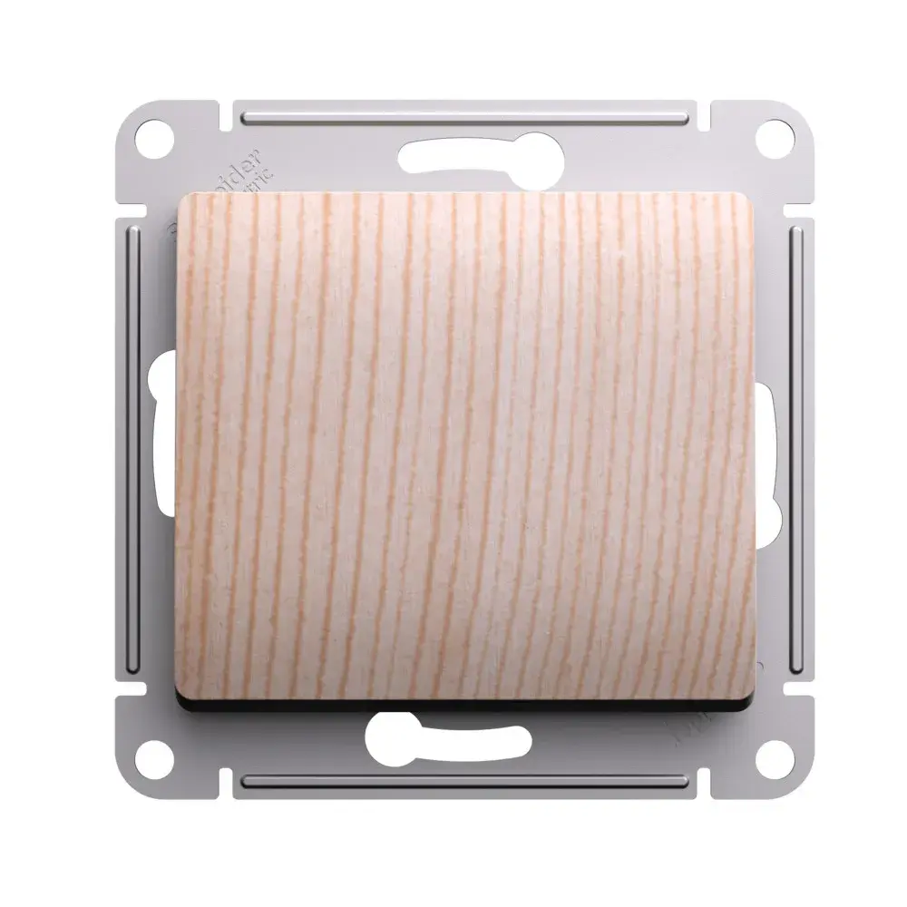 Механизм Systeme Electric (ранее Schneider Electric) серии Glossa (цвет сосна) переключателя 1-клавишного подходит для сетей 250 В, на ток 10 А. Переключатель позволяют управлять одним источником света с двух точек. Выполнен из материала PС+ASA, стойкого к УФ-излучению и появлению царапин. Эргономичные клеммы расположены в два ряда: сверху и снизу.