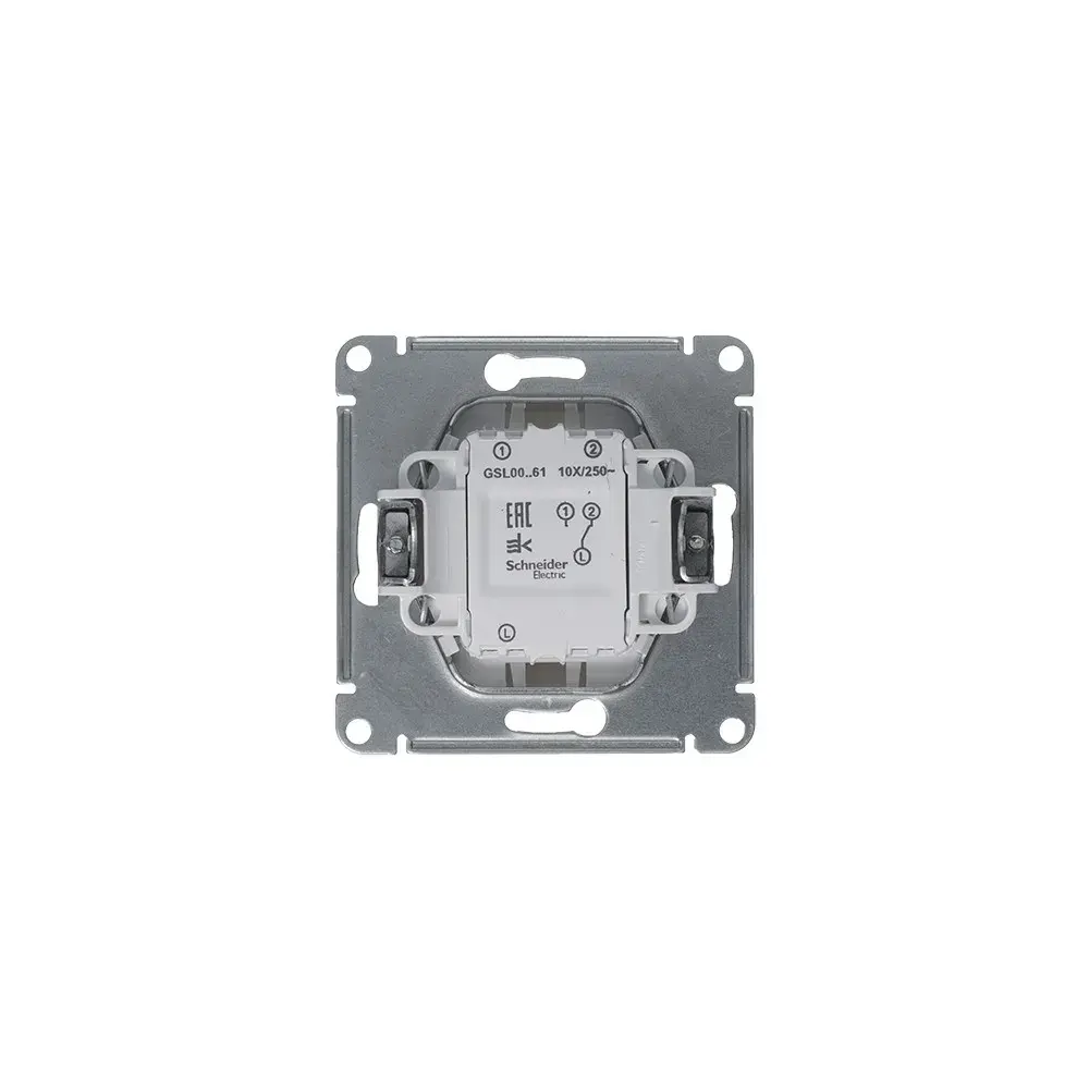 Механизм Systeme Electric (ранее Schneider Electric) серии Glossa (цвет платина) переключателя 1-клавишного подходит для сетей 250 В, на ток 10 А. - Переключатель позволяют управлять одним источником света с двух точек. - Выполнен из материала PС+ASA, стойкого к УФ-излучению и появлению царапин. - Эргономичные клеммы расположены в два ряда: сверху и снизу.