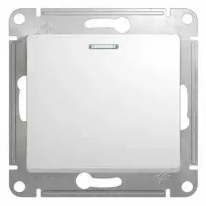 Механизм Systeme Electric (ранее Schneider Electric) серии Glossa (цвет белый) выключателя 1-клавишного с подсветкой подходит для сетей 250 В, на ток 10 А. - Благодаря современной светодиодной подсветке зеленого цвета изделие легко найти в темноте. - Выполнен из материала PС+ASA, стойкого к УФ-излучению и появлению царапин. - Эргономичные клеммы расположены в два ряда: сверху и снизу.