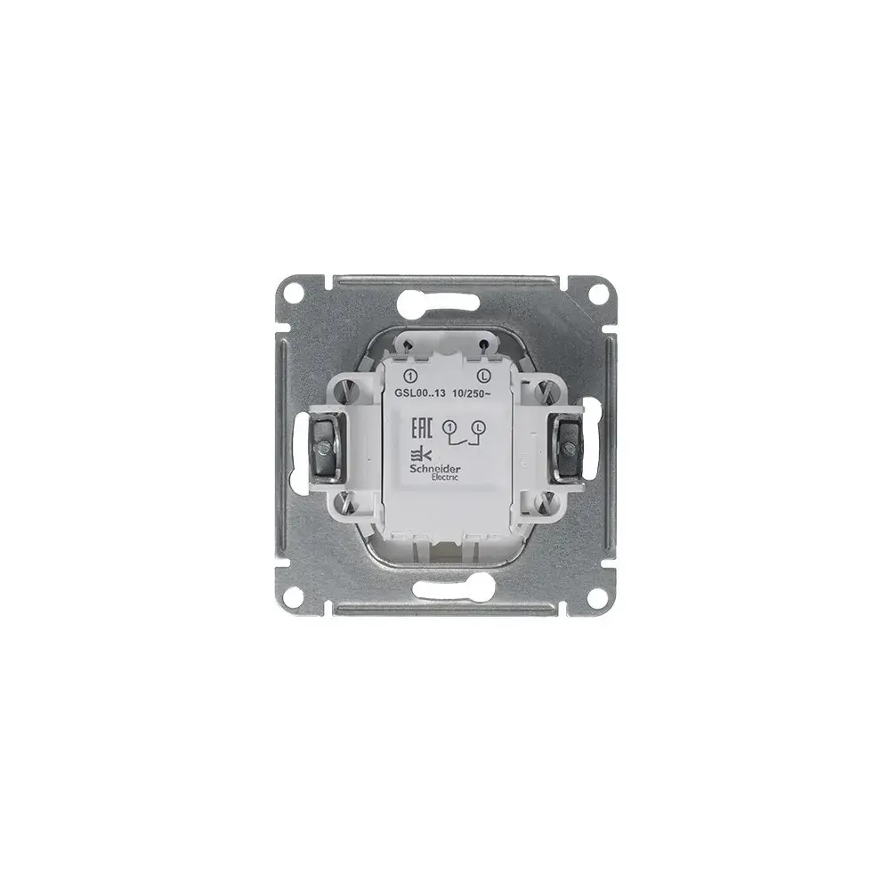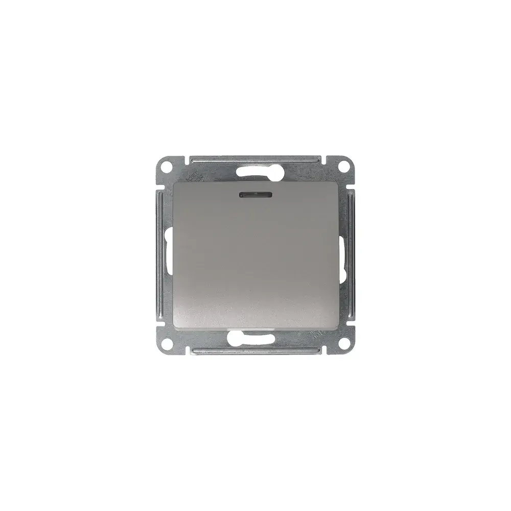 Механизм Systeme Electric (ранее Schneider Electric) серии Glossa (цвет платина) выключателя 1-клавишного с подсветкой подходит для сетей 250 В, на ток 10 А. - Благодаря современной светодиодной подсветке зеленого цвета изделие легко найти в темноте. - Выполнен из материала PС+ASA, стойкого к УФ-излучению и появлению царапин. - Эргономичные клеммы расположены в два ряда: сверху и снизу.