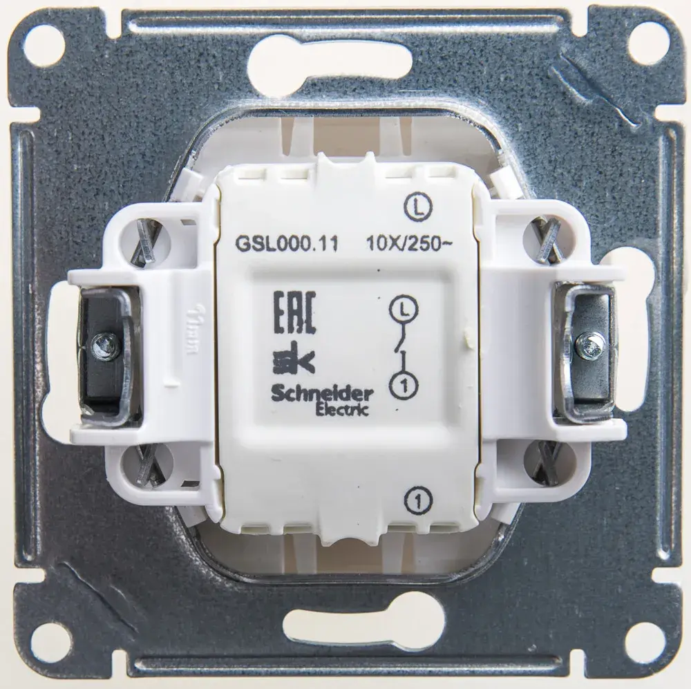 Механизм Systeme Electric (ранее Schneider Electric) серии Glossa (цвет перламутр) выключателя 1-клавишного подходит для сетей 250 В, на ток 10 А. - Выполнен из материала PС+ASA, стойкого к УФ-излучению и появлению царапин. - Эргономичные клеммы расположены в два ряда: сверху и снизу.