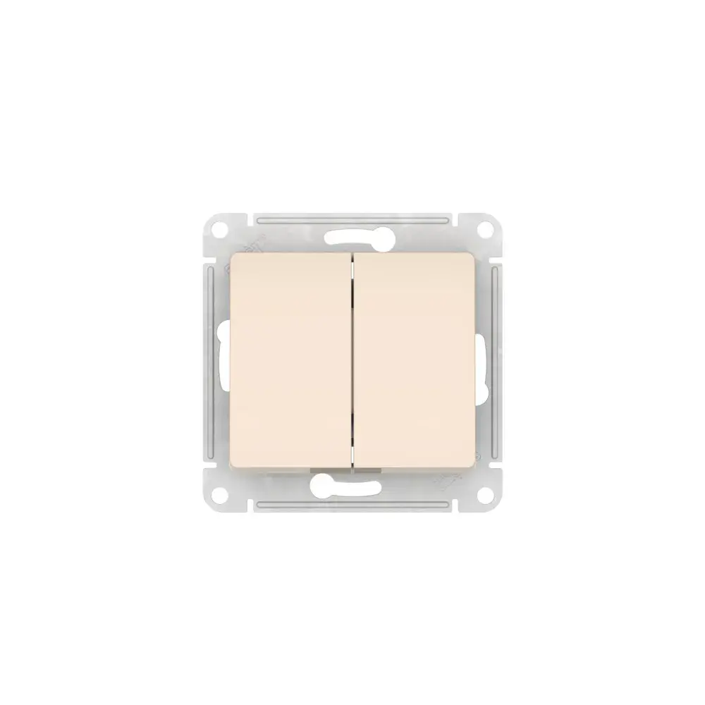 Механизм с быстрозажимными клеммами Systeme Electric (ранее Schneider Electric) серии Glossa (цвет бежевый) 2-клавишного переключателя подходит для сетей 250 В, на ток 10 А. С помощью новых быстрозажимных клемм монтаж розеток и выключателей стал намного быстрее. Теперь подключение не требует использования отвертки. Выполнен из материала PС+ASA, стойкого к УФ-излучению и появлению царапин.