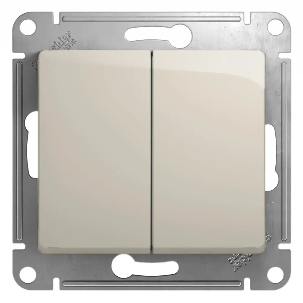 Механизм Systeme Electric (ранее Schneider Electric) серии Glossa (цвет молочный) переключателя 2-клавишного подходит для сетей 250 В, на ток 10 А. - Переключатель позволяют управлять одним источником света с двух точек. - Выполнен из материала PС+ASA, стойкого к УФ-излучению и появлению царапин. - Эргономичные клеммы расположены в два ряда: сверху и снизу.