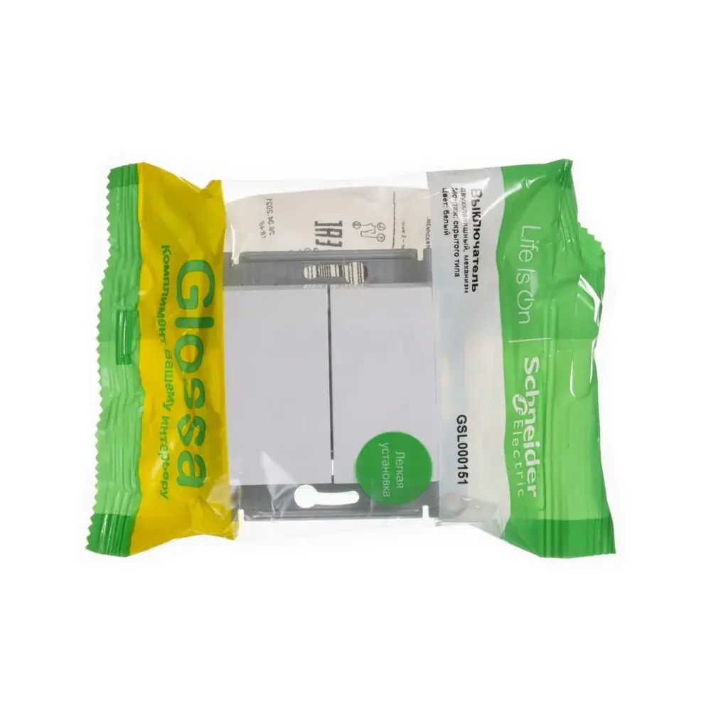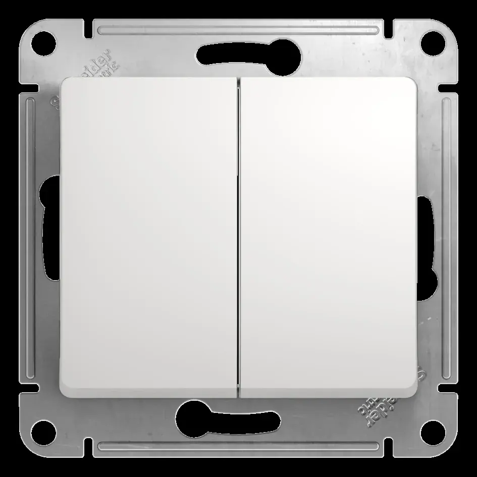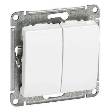 Механизм Systeme Electric (ранее Schneider Electric) серии Glossa (цвет белый) выключателя 2-клавишного подходит для сетей 250 В, на ток 10 А. - Двухклавишный выключатель позволяет управлять двумя источниками света с одной точки. - Выполнен из материала PС+ASA, стойкого к УФ-излучению и появлению царапин. - Эргономичные клеммы расположены в два ряда: сверху и снизу.