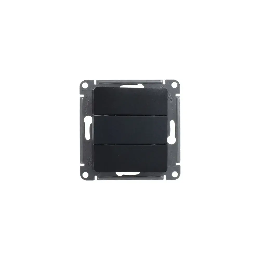 Механизм Systeme Electric (ранее Schneider Electric) серии Glossa (цвет антрацит) выключателя 3-клавишного подходит для сетей 250 В, на ток 10 А. - Трёхклавишный выключатель позволяет управлять тремя источниками света из одной точки. - Выполнен из материала PС+ASA, стойкого к УФ-излучению и появлению царапин. - Эргономичные клеммы расположены в два ряда: сверху и снизу.