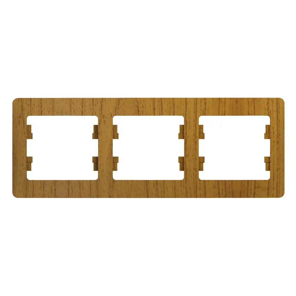 Рамка Systeme Electric (ранее Schneider Electric) серии Glossa (цвет дерево дуб) трёхместная. - Устанавливается в горизонтальном положении. - Выполнена из материала PС+ASA, стойкого к УФ-излучению и появлению царапин. - Позволяет гармонично вписать электроустановочное изделие в интерьер помещения.