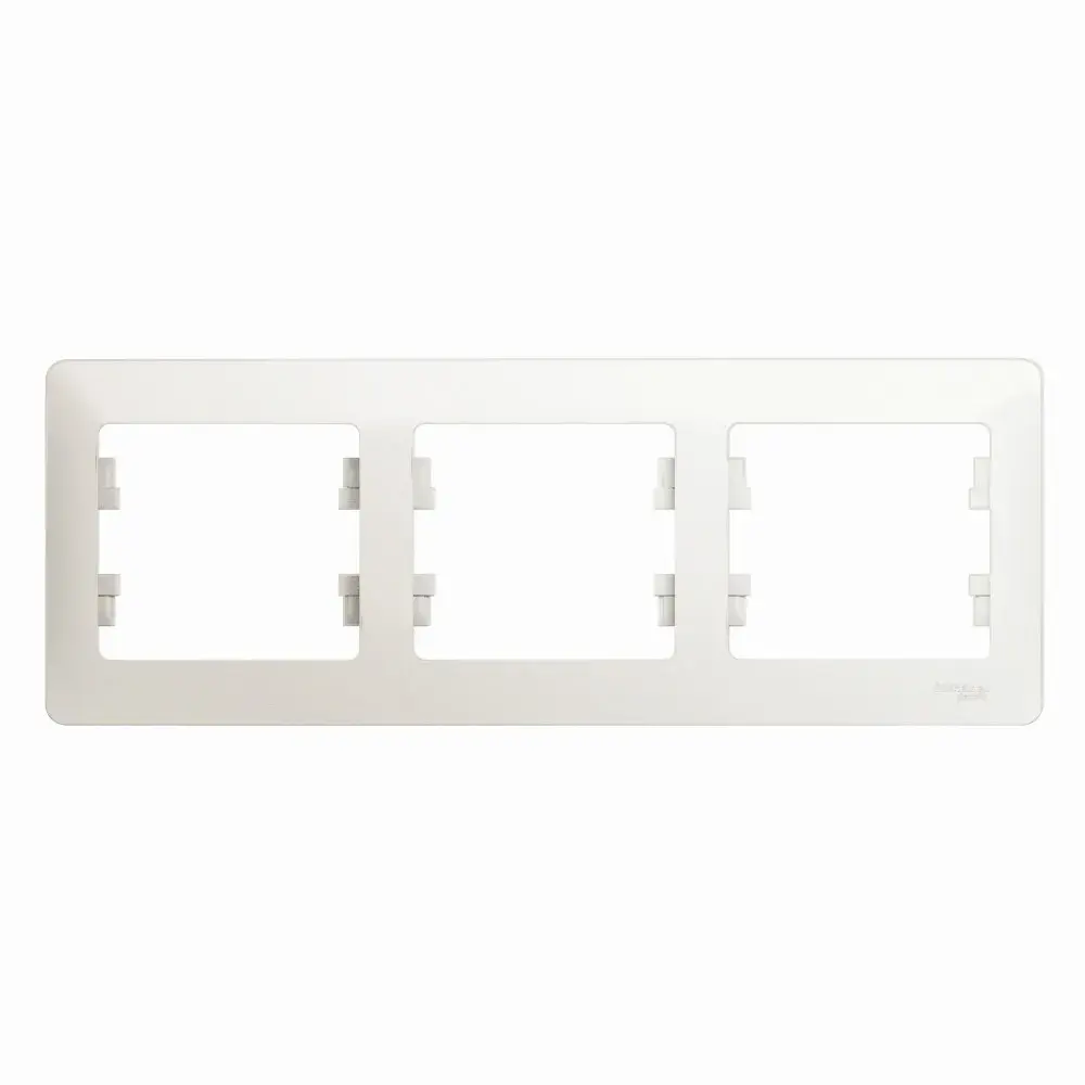 Рамка Systeme Electric (ранее Schneider Electric) серии Glossa (цвет перламутр) трёхместная. - Устанавливается в горизонтальном положении. - Выполнена из материала PС+ASA, стойкого к УФ-излучению и появлению царапин. - Позволяет гармонично вписать электроустановочное изделие в интерьер помещения.