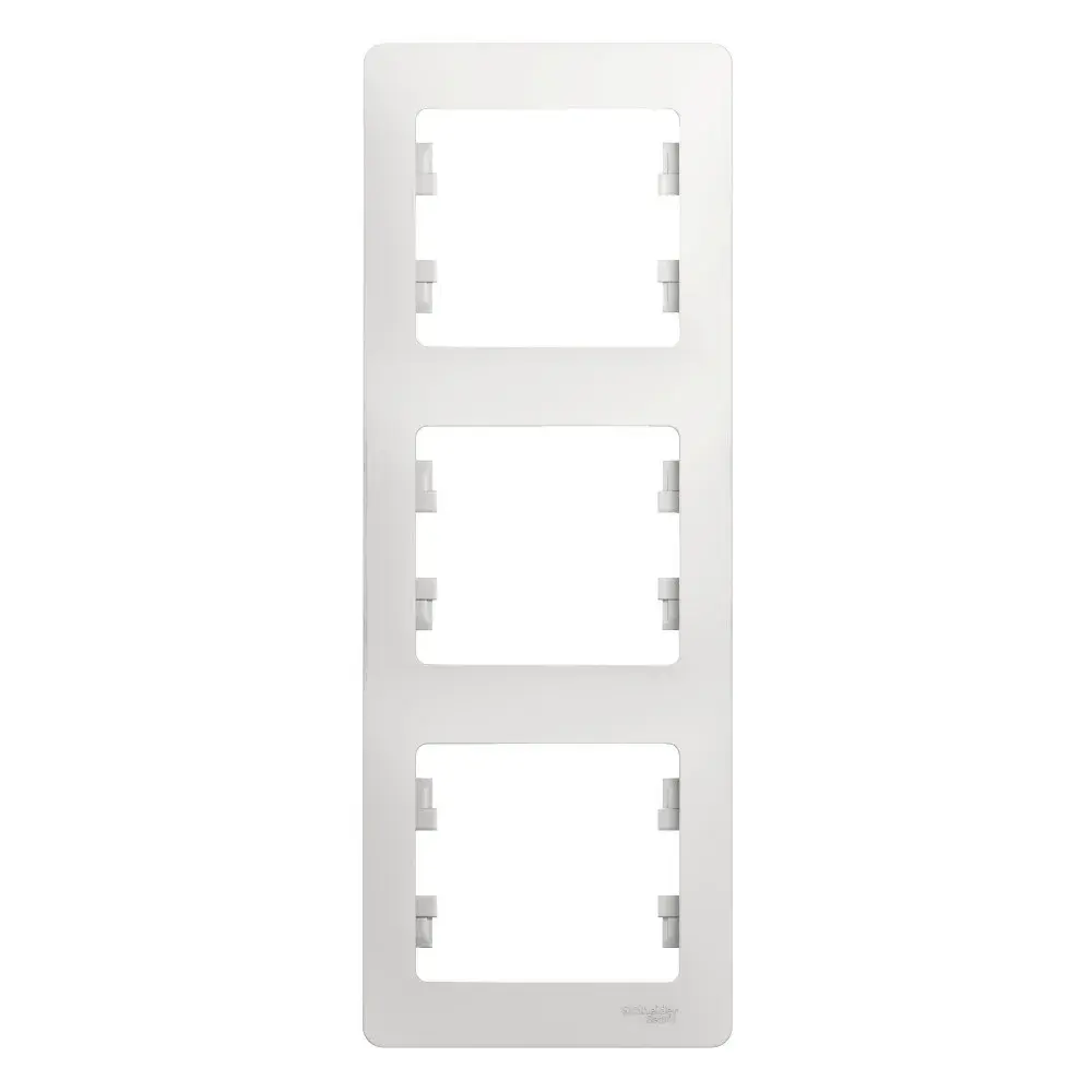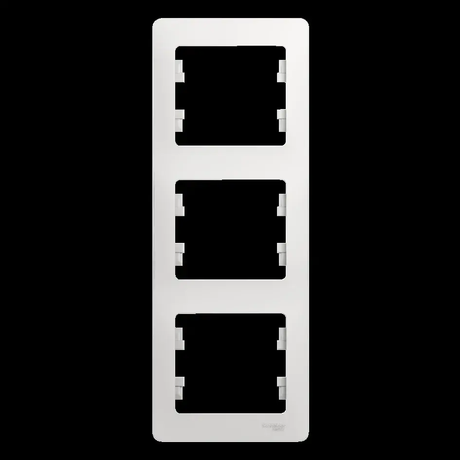 Рамка Systeme Electric (ранее Schneider Electric) серии Glossa (цвет белый) трёхместная. - Устанавливается в вертикальном положении. - Выполнена из материала PС+ASA, стойкого к УФ-излучению и появлению царапин. - Позволяет гармонично вписать электроустановочное изделие в интерьер помещения.