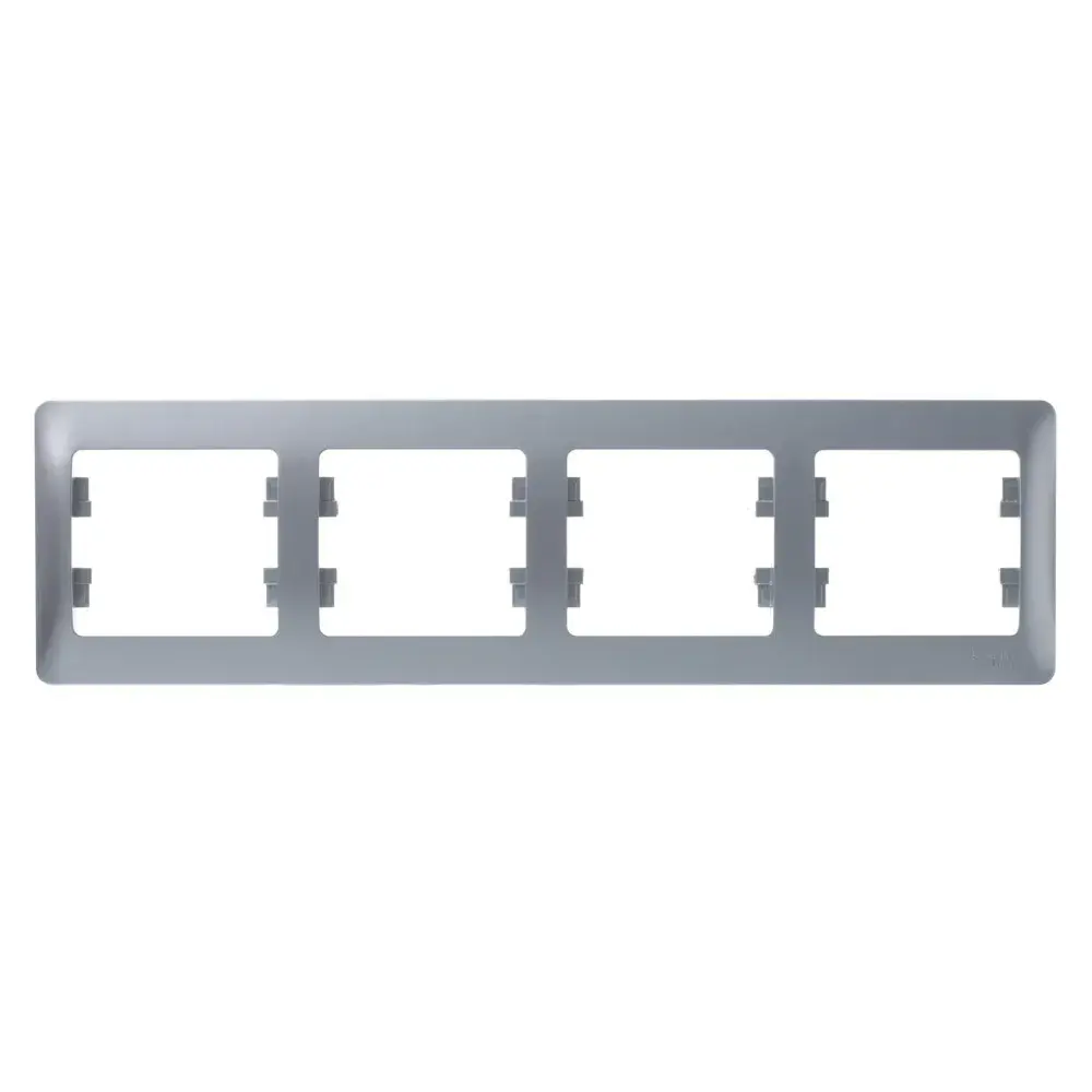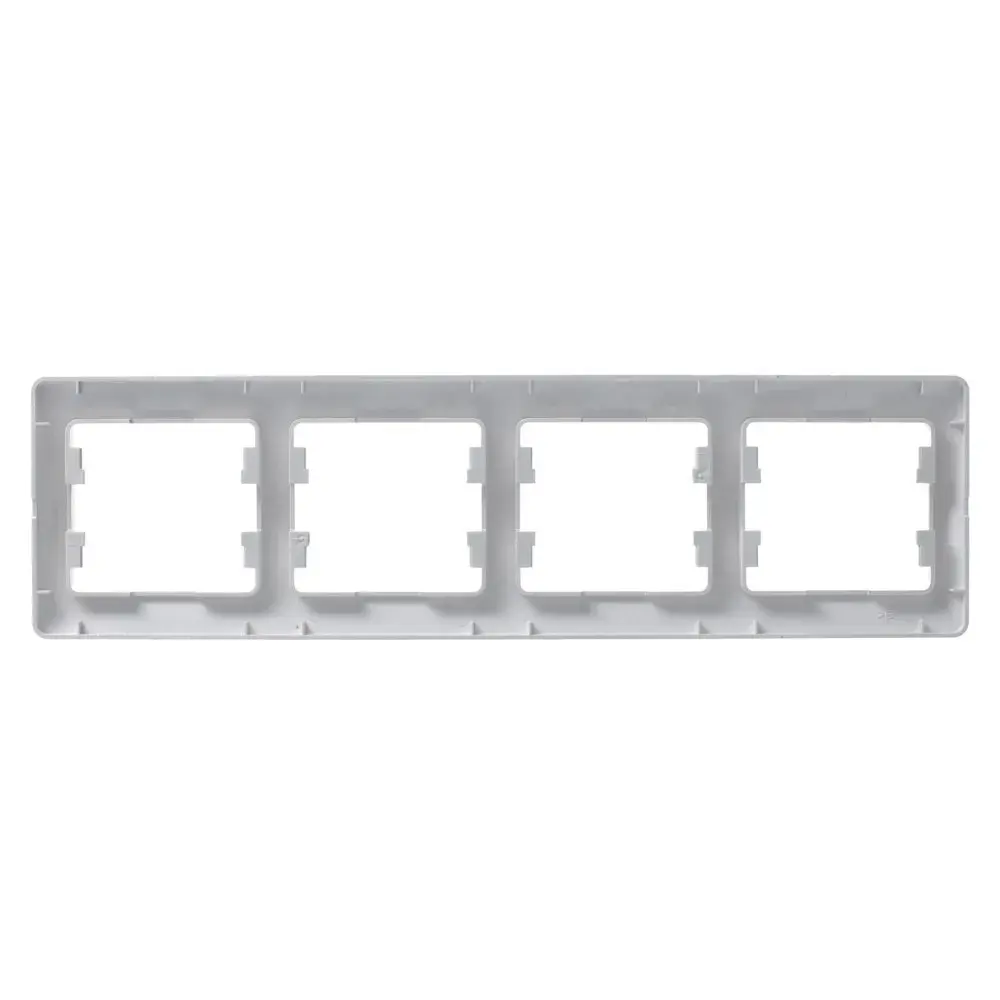 Рамка Systeme Electric (ранее Schneider Electric) серии Glossa (цвет алюминий) четырёхместная. - Устанавливается в вертикальном положении. - Выполнена из материала PС+ASA, стойкого к УФ-излучению и появлению царапин. - Позволяет гармонично вписать электроустановочное изделие в интерьер помещения.