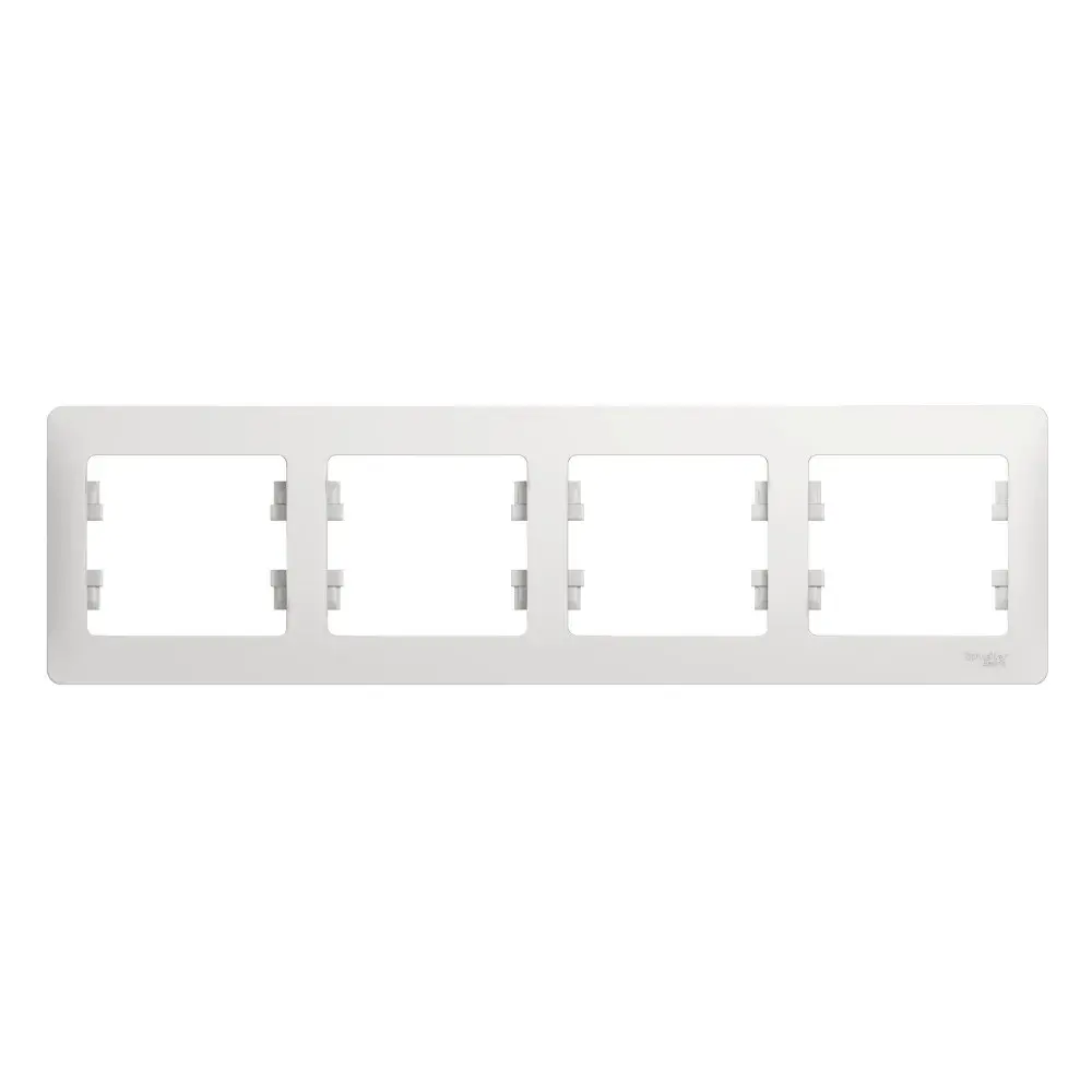 Рамка Systeme Electric (ранее Schneider Electric) серии Glossa (цвет белый) четырёхместная. - Устанавливается в горизонтальном положении. - Выполнена из материала PС+ASA, стойкого к УФ-излучению и появлению царапин. - Позволяет гармонично вписать электроустановочное изделие в интерьер помещения.
