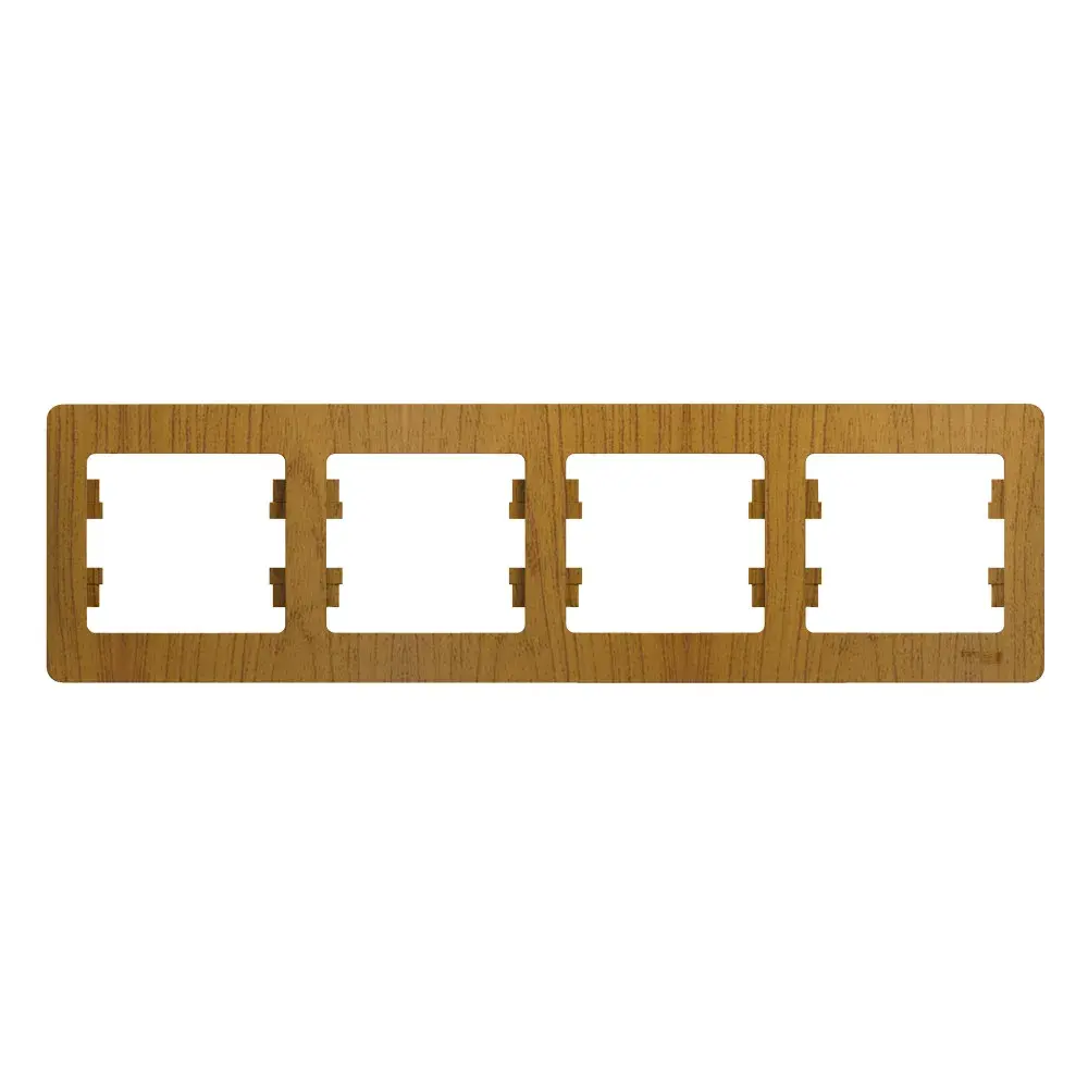 Рамка Systeme Electric (ранее Schneider Electric) серии Glossa (цвет дерево дуб) четырёхместная. - Устанавливается в горизонтальном положении. - Выполнена из материала PС+ASA, стойкого к УФ-излучению и появлению царапин. - Позволяет гармонично вписать электроустановочное изделие в интерьер помещения.
