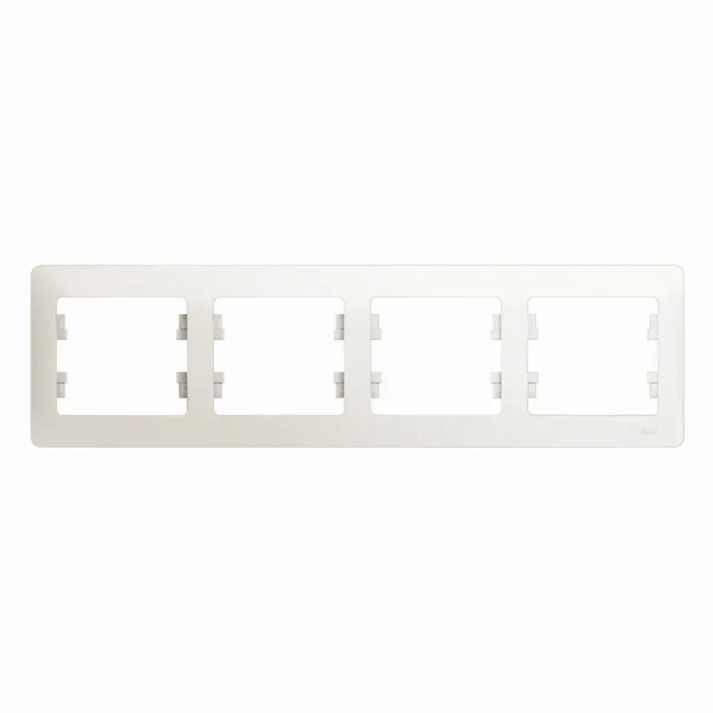 Рамка Systeme Electric (ранее Schneider Electric) серии Glossa (цвет перламутр) четырёхместная. - Устанавливается в горизонтальном положении. - Выполнена из материала PС+ASA, стойкого к УФ-излучению и появлению царапин. - Позволяет гармонично вписать электроустановочное изделие в интерьер помещения.