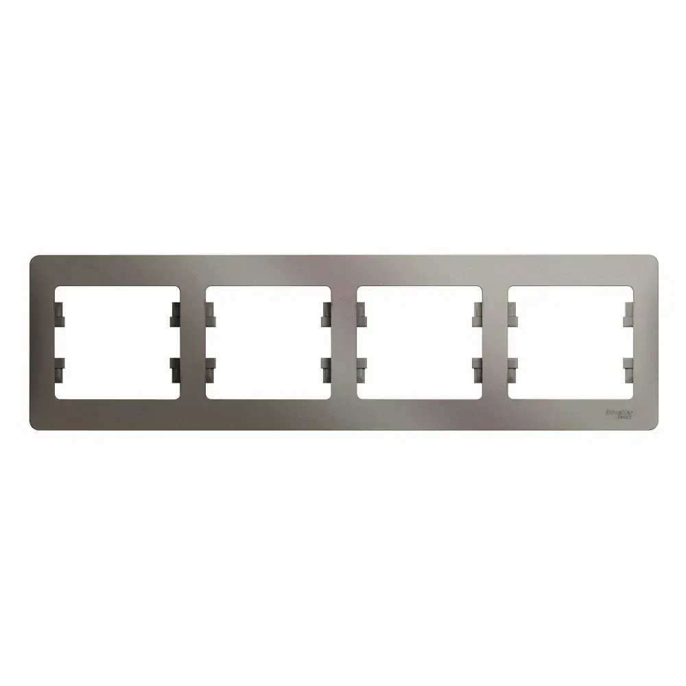 Рамка Systeme Electric (ранее Schneider Electric) серии Glossa (цвет платина) четырёхместная. - Устанавливается в горизонтальном положении. - Выполнена из материала PС+ASA, стойкого к УФ-излучению и появлению царапин. - Позволяет гармонично вписать электроустановочное изделие в интерьер помещения.