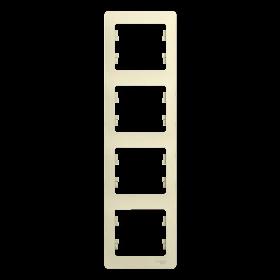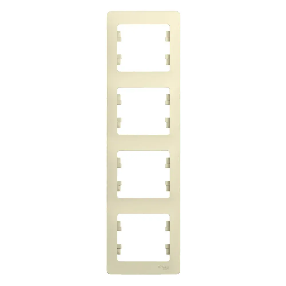 Рамка Systeme Electric (ранее Schneider Electric) серии Glossa (цвет бежевый) четырёхместная. - Устанавливается в вертикальном положении. - Выполнена из материала PС+ASA, стойкого к УФ-излучению и появлению царапин. - Позволяет гармонично вписать электроустановочное изделие в интерьер помещения.