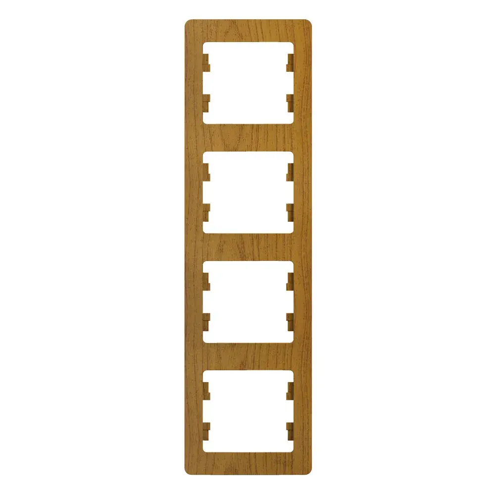 Рамка Systeme Electric (ранее Schneider Electric) серии Glossa (цвет дерево дуб) четырёхместная. - Устанавливается в вертикальном положении. - Выполнена из материала PС+ASA, стойкого к УФ-излучению и появлению царапин. - Позволяет гармонично вписать электроустановочное изделие в интерьер помещения.