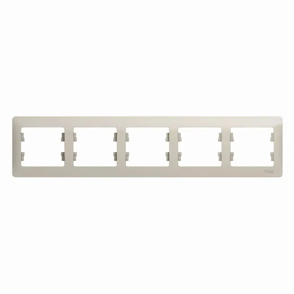 Рамка Systeme Electric (ранее Schneider Electric) серии Glossa (цвет молочный) пятиместная. - Устанавливается в горизонтальном положении. - Выполнена из материала PС+ASA, стойкого к УФ-излучению и появлению царапин. - Позволяет гармонично вписать электроустановочное изделие в интерьер помещения.