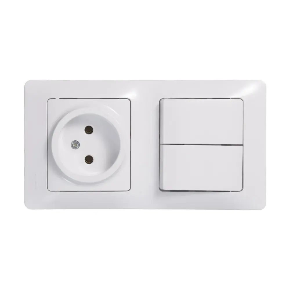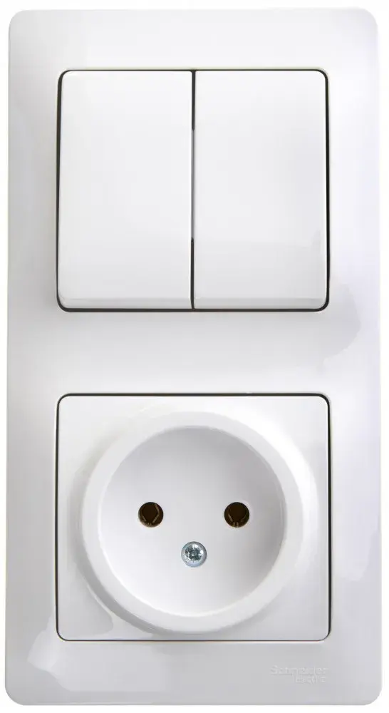 Блок комбинированный Systeme Electric (ранее Schneider Electric) серии Glossa (в сборе, цвет белый) предназначен для сетей до 250 В, состоит из розетки на 16 А и 2-клавишного выключателя на 10 А. - Блок удобен в применении и отлично подходит для коридора. - Двухклавишный выключатель позволяет управлять двумя источниками света из одной точки. - Выполнен из материала PС+ASA, стойкого к УФ-излучению и появлению царапин.