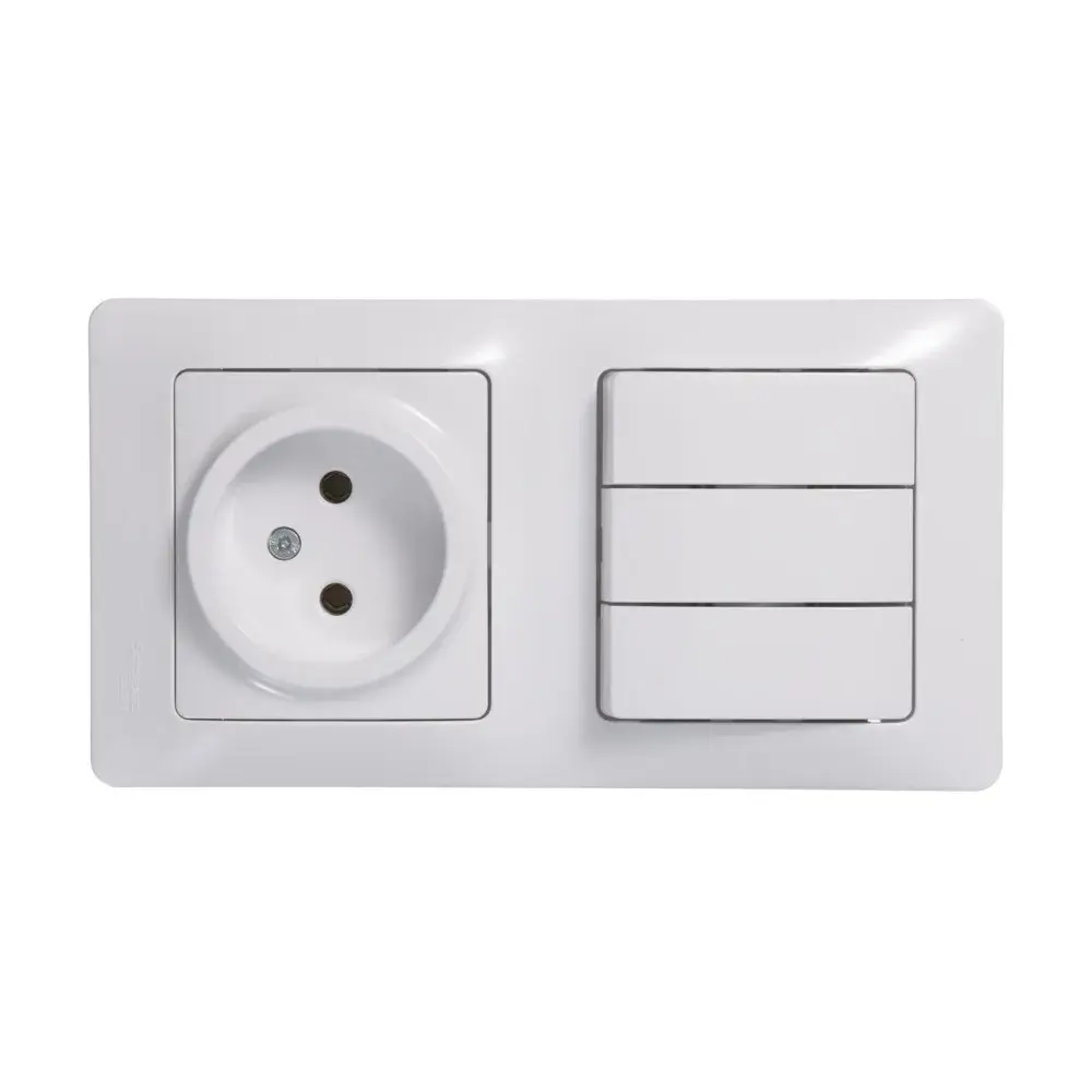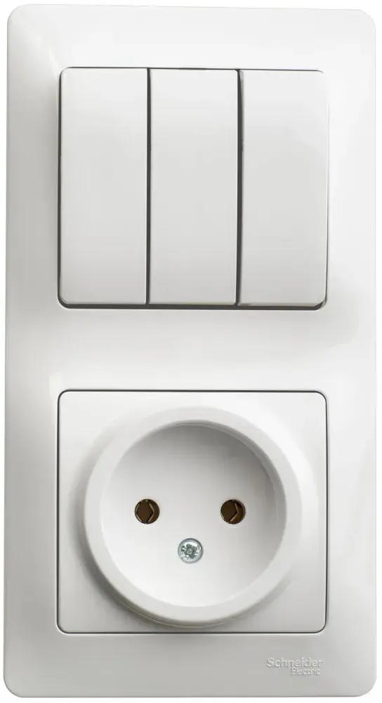 Блок комбинированный Systeme Electric (ранее Schneider Electric) серии Glossa (в сборе, цвет белый) предназначен для сетей до 250 В, состоит из розетки на 16 А и 3-клавишного выключателя на 10 А. - Блок удобен в применении и отлично подходит для коридора. - Трёхклавишный выключатель позволяет управлять тремя источниками света из одной точки. - Выполнен из материала PС+ASA, стойкого к УФ-излучению и появлению царапин.