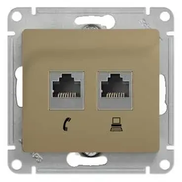 Механизм Systeme Electric (ранее Schneider Electric) серии Glossa (цвет титан) двойной розетки разъёмами RJ45 категория 5е и RJ11 предназначен для удобного и быстрого подключения вашего компьютера и телефона к соответствующим сетям. - Выполнен из материала PС+ASA, стойкого к УФ-излучению и появлению царапин.
