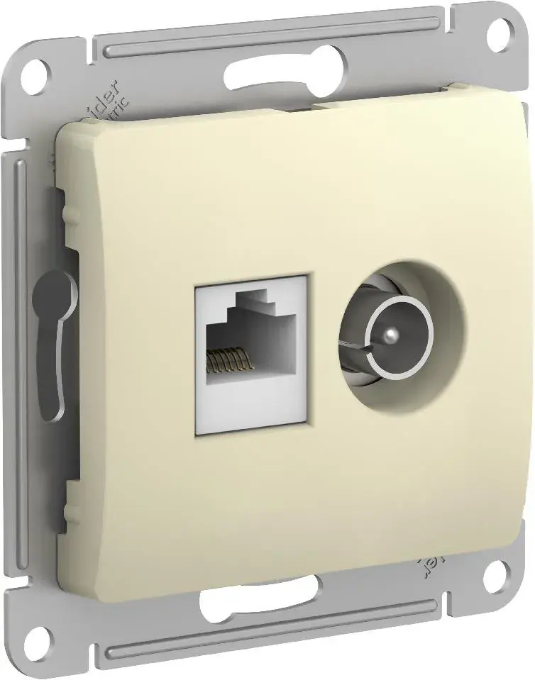 Двойная розетка TV и компьютерная RJ45, категории 5E. Цвет бежевый. Степень защиты IP:20. Розетка, объединяющая в себе две функции позволит сэкономить место. Изделие относится к популярной серии электроустановочных изделий Glossa, которая сочетает в себе истинный французский дизайн, надежный немецкий стандарт механизмов и российские производственные традиции.