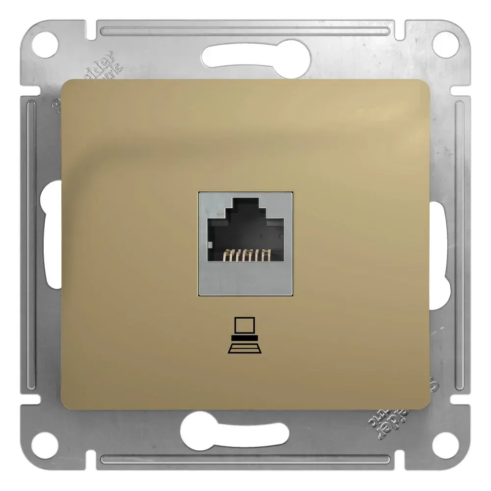 Механизм Systeme Electric (ранее Schneider Electric) серии Glossa (цвет титан) розетки компьютерной с разъёмом RJ45 категория 5е предназначен для удобного и быстрого подключения вашего компьютера к компьютерной сети. - Выполнен из материала PС+ASA, стойкого к УФ-излучению и появлению царапин.