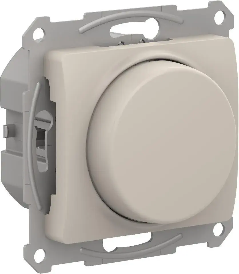 Механизм светорегулятора Systeme Electric (ранее Schneider Electric) серии Glossa (цвет молочный) поворотно-нажимной для нагрузки мощностью до 400 Вт, подходит для LED ламп. - Светорегулятор позволяет установить в помещении комфортный уровень освещения. - При подключении второго переключателя диммер может использоваться как проходной переключатель. - Может использоваться как выключатель или переключатель. - Выполнен из материала, стойкого к УФ-излучению и появлению царапин.