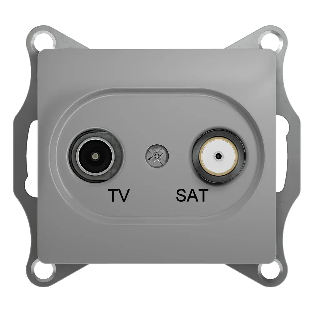 Механизм Systeme Electric (ранее Schneider Electric) серии Glossa (цвет алюминий) розетки TV-SAT оконечной 1DB предназначен для подключения бытовой теле-, видео- и радиоаппаратуры к антенному кабелю при внутренней установке в жилых, общественных и промышленных помещениях. - Оконечная розетка может устанавливаться как отдельно, так и в конце подключения «в линию» - Выполнен из материала PС+ASA, стойкого к УФ-излучению и появлению царапин.