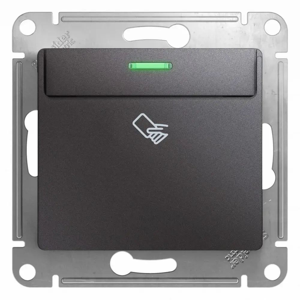 Механизм Systeme Electric (ранее Schneider Electric) серии Glossa (цвет графит) выключателя карточного подходит для сетей 250 В, на ток 10 А. - Идеально подходит для гостиниц и отелей. - Выполнен из материала PС+ASA, стойкого к УФ-излучению и появлению царапин.