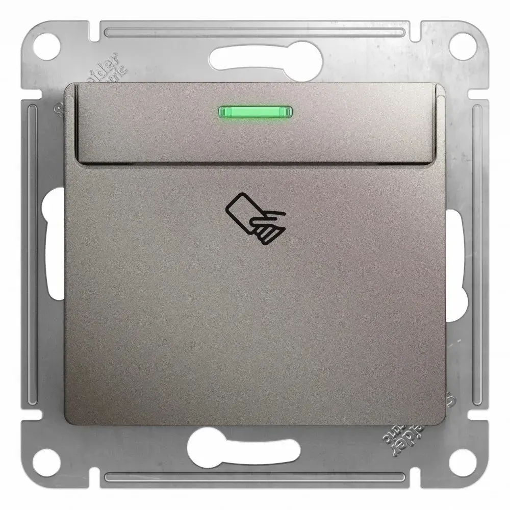 Механизм Systeme Electric (ранее Schneider Electric) серии Glossa (цвет платина) выключателя карточного подходит для сетей 250 В, на ток 10 А. - Идеально подходит для гостиниц и отелей. - Выполнен из материала PС+ASA, стойкого к УФ-излучению и появлению царапин.