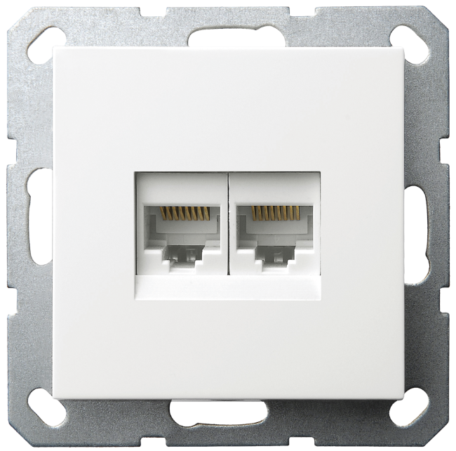 Интернет розекта 2х терминальная 6 категория, цвет белый глянцевый