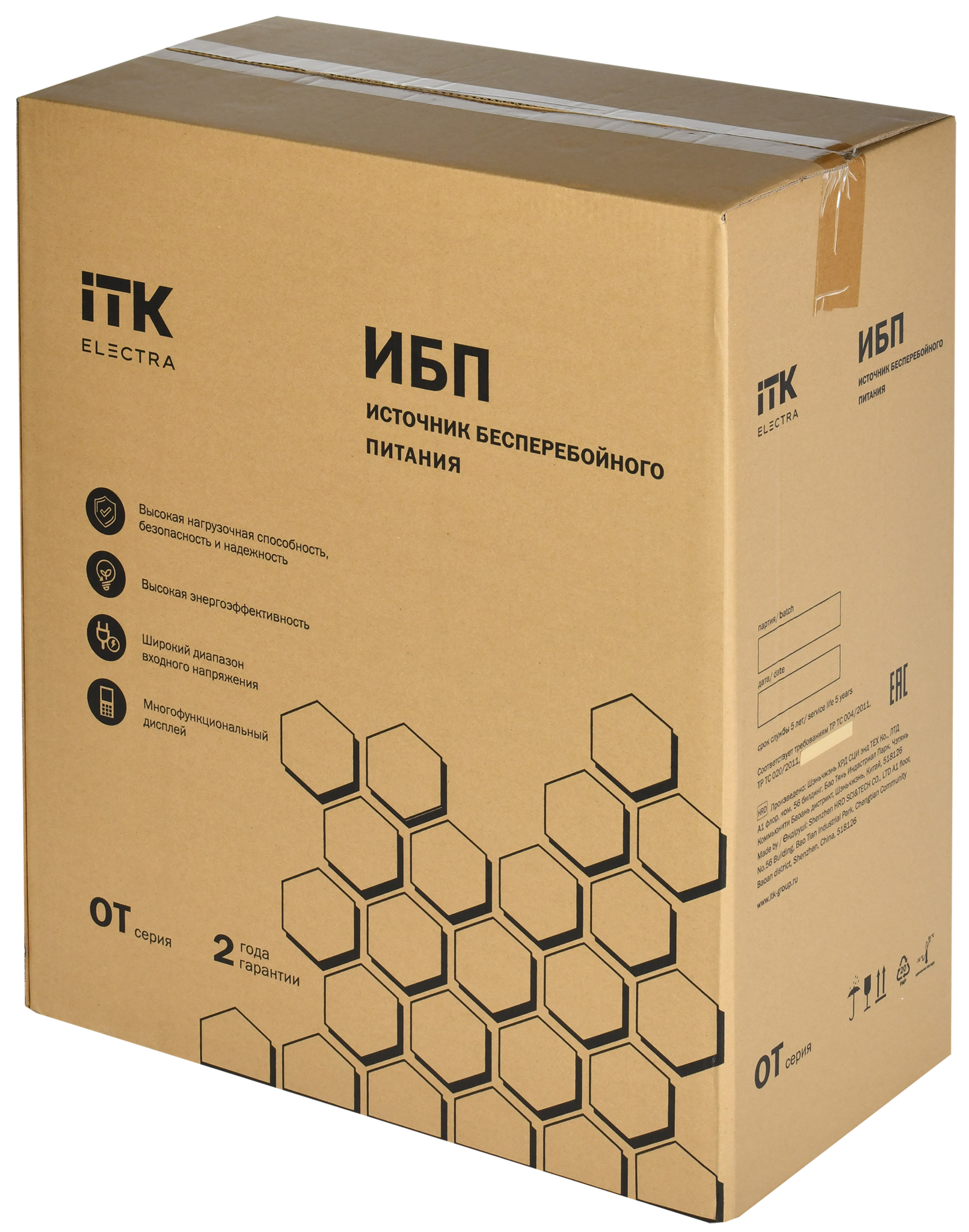 ITK ELECTRA OT – онлайн напольные ИБП. Оснащен 16 АКБ емкостью 7Ач и клеммной колодкой. Имеет встроенное программное обеспечение, через которое можно осуществлять мониторинг состояния ИБП, удалённо включать или выключать устройство. Поддерживается интерфейс SNMP, что даёт возможность связи с ИБП через локальную сеть.