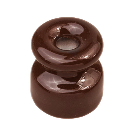 Изолятор из керамики, выполненный в коричневом цвете. Является важным элементом для фиксации электрического провода открытой проводки. В изделии имеется отверстие, через которое продевается шуруп или гвоздь. Безупречные эстетические качества позволяют использовать ролики в жилых помещениях. Они являются прекрасным дополнением стиля ретро, лофт, кантри и Прованс.
