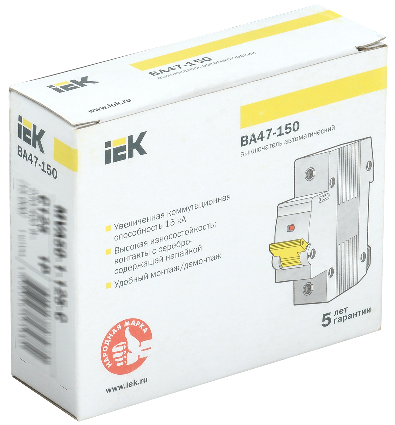 Автоматические выключатели ВА47-150 предназначены для защиты распределительных и групповых цепей от высоких токов короткого замыкания. Рекомендуются к применению во вводно-распределительных устройствах бытовых и промышленных электроустановок. Предельная отключающая способность 15000 А. 32 типоисполнения на 4 номинальных тока. Характеристики срабатывания С и D.