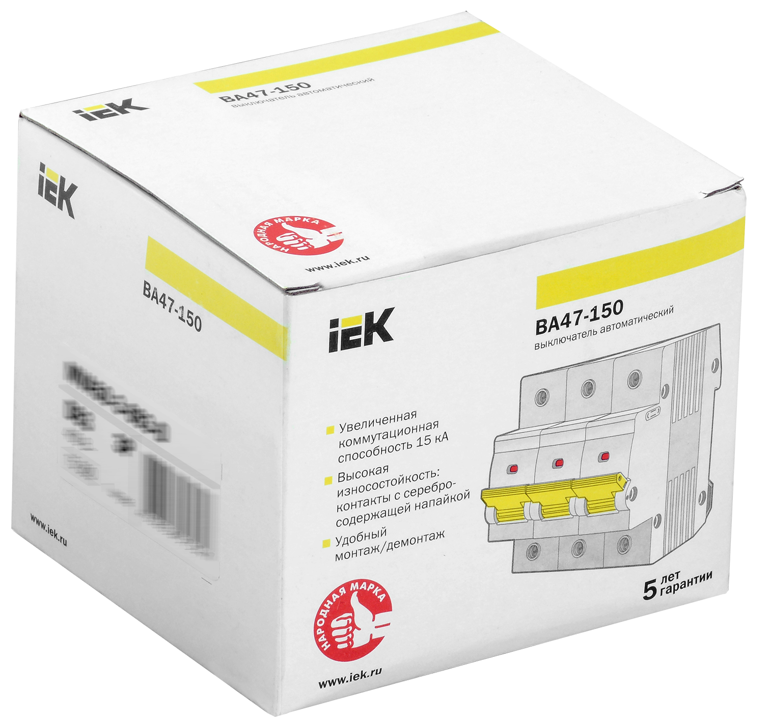 Автоматические выключатели ВА47-150 предназначены для защиты распределительных и групповых цепей от высоких токов короткого замыкания. Рекомендуются к применению во вводно-распределительных устройствах бытовых и промышленных электроустановок. Предельная отключающая способность 15000 А. 32 типоисполнения на 4 номинальных тока. Характеристики срабатывания С и D.