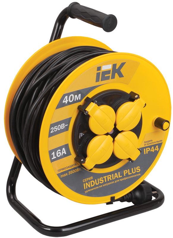 Удлинитель на катушке позволяет легко подключить удаленное от стационарной розетки электрооборудование. Незаменим на строительной площадке, на садовом участке, в парках с аттракционами, в промышленности и в быту.