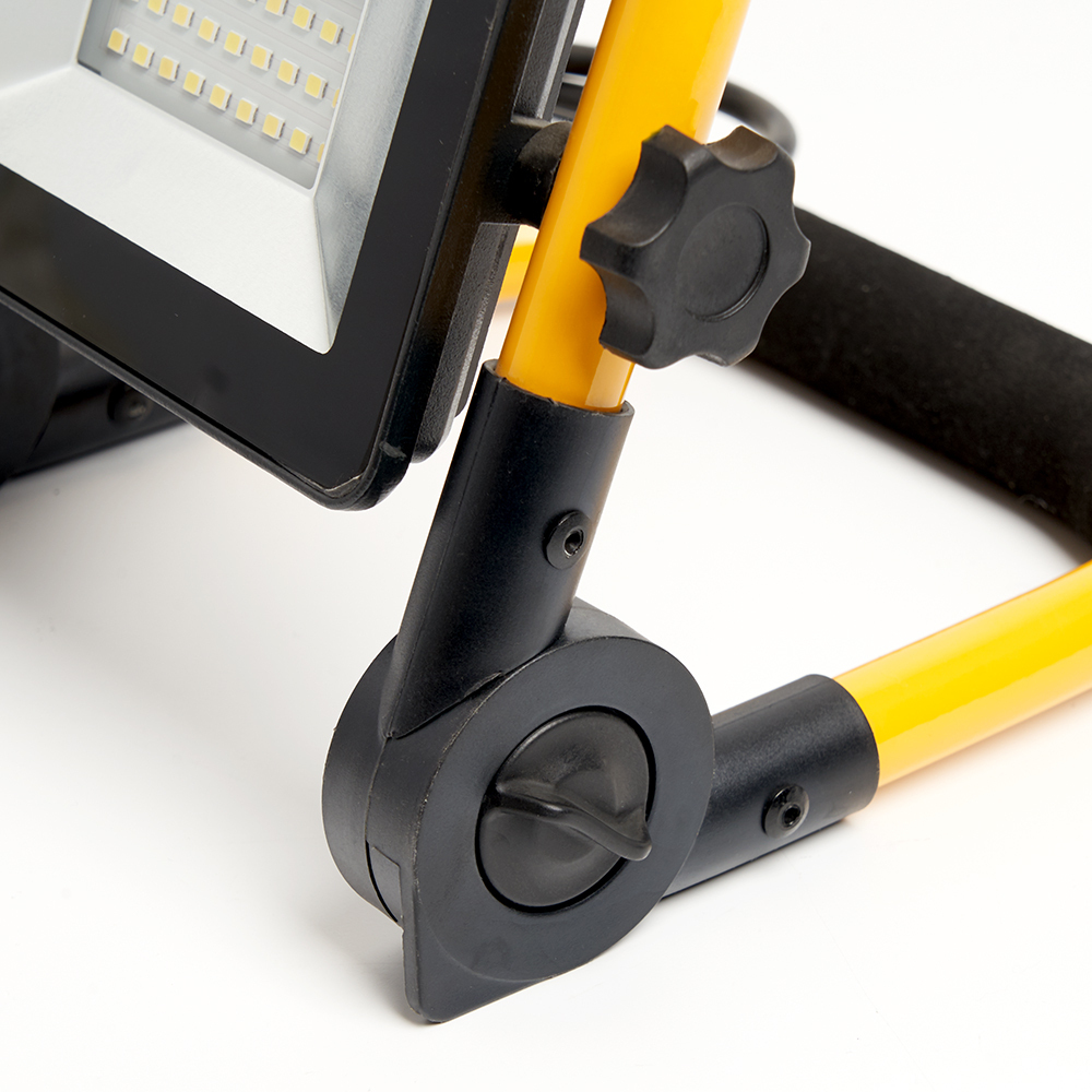 Прожекторы светодиодные на штативе, переносные с ручкой, (ДО) FERON LL-512, 30W, 6400К (холодный белый), 230V/50Гц, 2700Lm, IP65, угол рассеивания 120°,*SMD2835, раб.t -40°C - +45°C, цвет черный-желтый, корпус алюминий литой под давлением + стекло, 175*50*190 мм