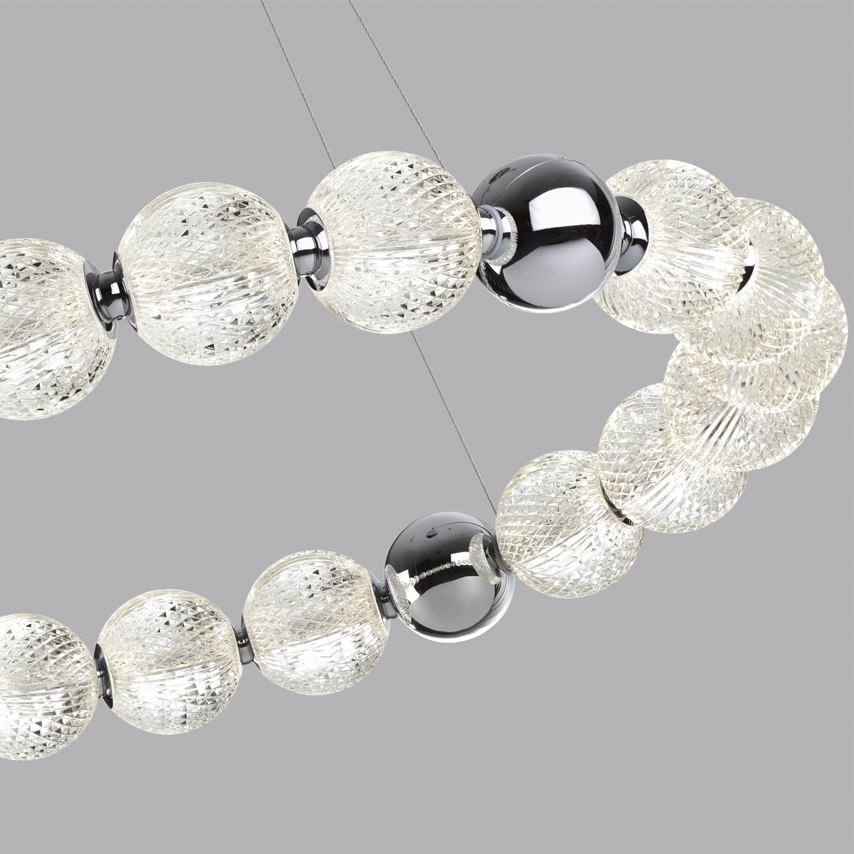 Великолепная светодиодная линия Crystal поражает изяществом, лаконичностью и многообразием модельного ряда. Акриловые шарики, имитирующих хрустальную резную фактуру, создадут непередаваемую игру света и переливов. В этом году коллекция пополнилась подвесной люстрой с оптимальным диаметром 690 мм, что делает ее более универсальной. Диаметр стал меньше относительно уже существующей люстры диаметром 940 мм, а мощность больше — 60Вт за счет увеличения числа акриловых шаров с LED и уменьшения декоративных металлических.