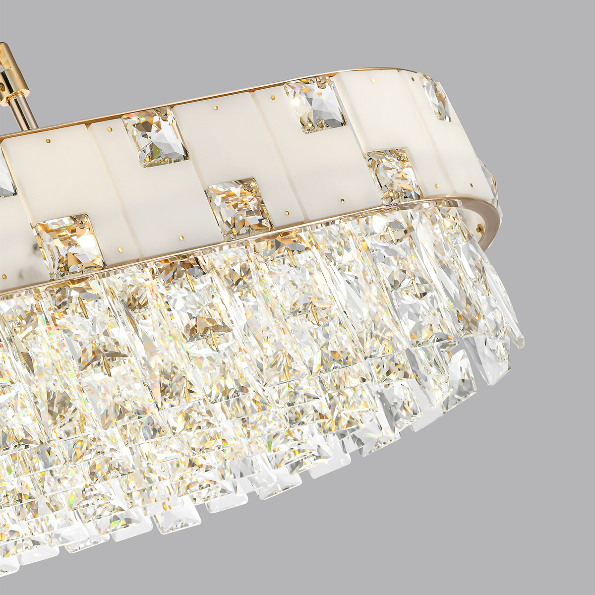 Линия Chessi — это абсолютная новинка — роскошное сочетание элементов из алебастра и хрусталя. Комбинированный декоративный обод и хрустальные подвески образуют очень красивые модели. Люстры в 3-х диаметрах, овальный светильник и бра объединены в прекрасную коллекцию, которой можно осветить большое помещение в одном стиле. Стандартный цоколь Е14 позволяет установить светодиодные лампы , в свете которых алебастр еще больше раскроется и поразит всех невероятной белизной природного камня.