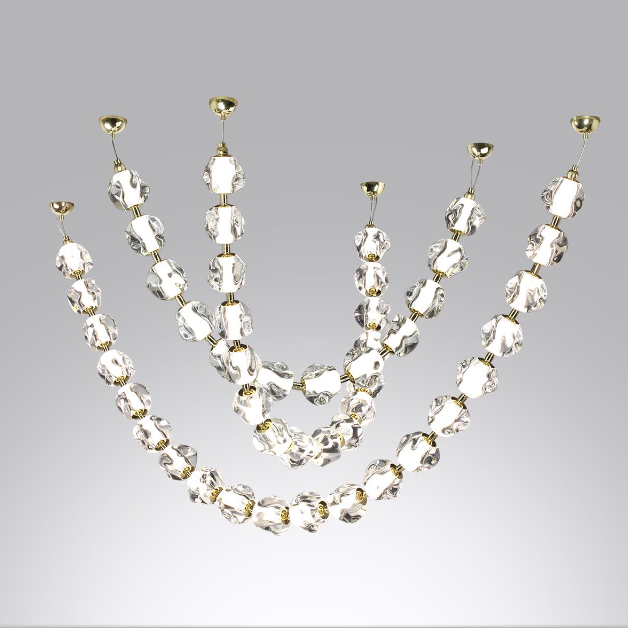 Jemstone серия смотрится как истинно дизайнерское произведение - роскошное и нестандартное: невероятно красивые плафоны необычной формы в виде сжатого камня; материал плафона - высококачественный акрил фирмы Mitsubishi (Япония), который обладает великолепными светопреломляющими и светоотражающими свойствами; 100% имитация хрусталя – характерные переливы, сверкание, идеальная прозрачность. В модельный ряд линии входят бра 2-х видов, каскадные люстры (высота 2 и 2,5м, удобный механизм регулировки струн ), одиночные подвесы и подвесы-«бусы» с системой крепления 2 в 1- накладной и встроенный монтаж в комплекте.