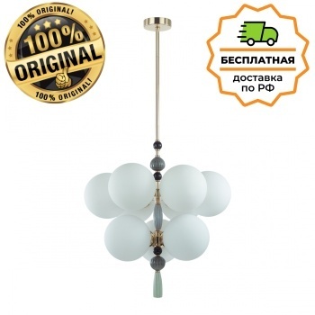 Воздушная линия светильников Palle декорирована керамикой ручной работы. В ней красиво сочетаются гофрированная керамика, металл покрытый золотой гальваникой и матовое белое стекло. Керамический декор выполнен в серых оттенках с акцентной светло-зеленой кисточкой и дополнен стеклянными черными бусинами. Потолочные светильники имеют возможность регулировки высоты благодаря наборной штанге.