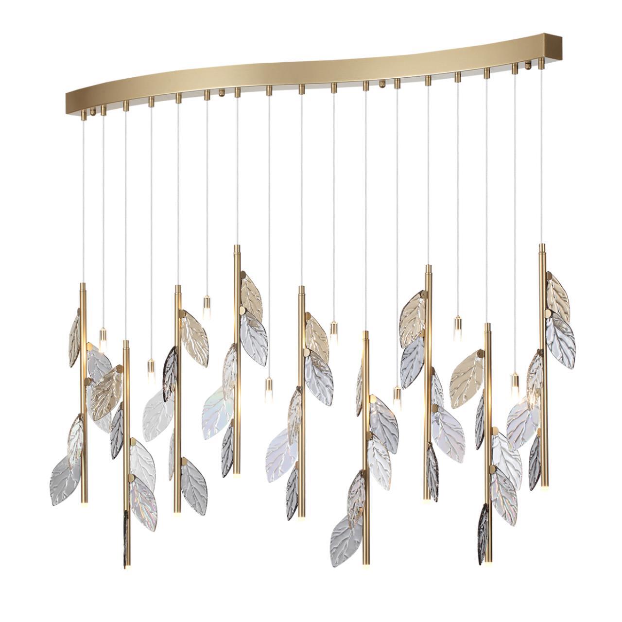 Красота кружащихся в воздухе осенних листьев застыла в дизайне линии светильников Listva. Изящный потолочный светильник станет идеальным украшением обеденной зоны. Декоративные листья выполнены вручную в точности по эскизам дизайнера и имеют четыре оттенка - коньячный, дымчатый, прозрачный и с эффектом бензинового градиента. Потолочную композицию можно регулировать по высоте благодаря тросам и создавать уникальную форму светильника. Одиночный подвесной светильник оставляется с двумя вариантами потолочного крепежа в комплекте - встраиваемым и накладным.