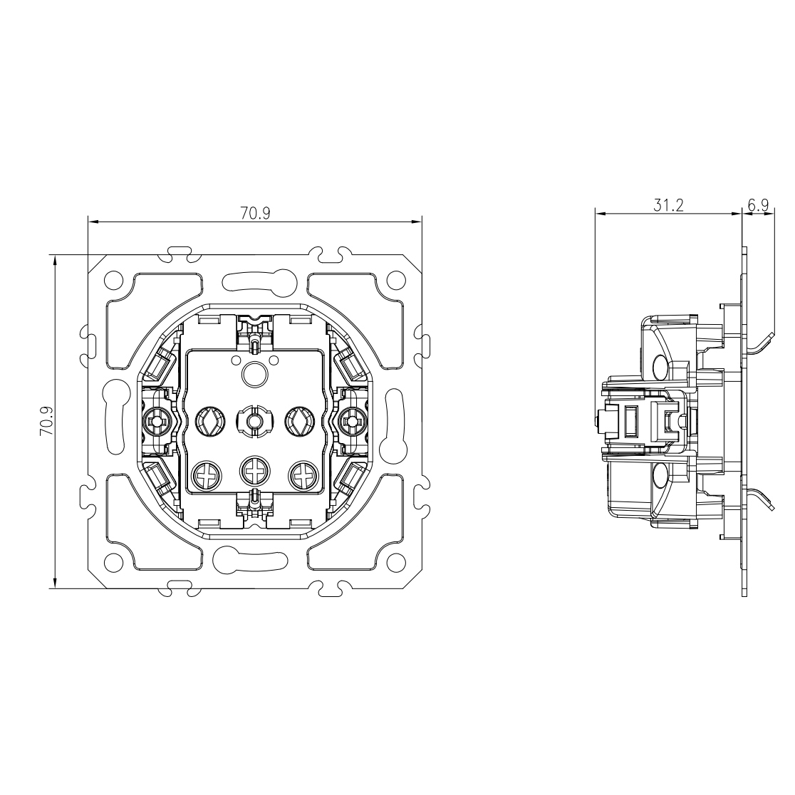 Механизм розетки без заземления 16А 250В~ на винтах, серия DB