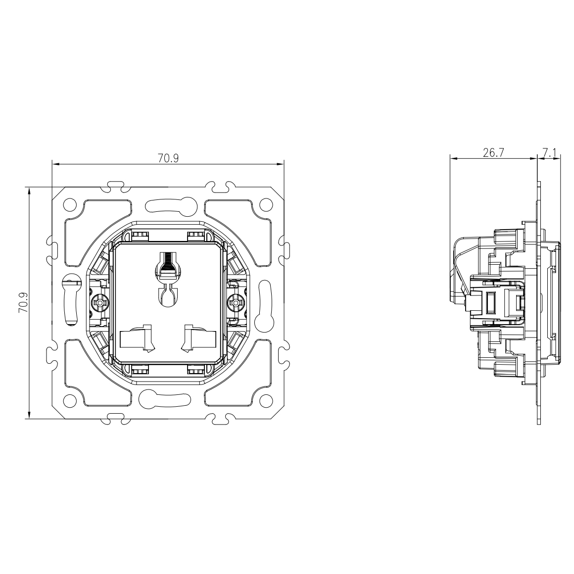 Механизм универсальной розетки мультистандарт 16А 250В~ на винтах, серия DB