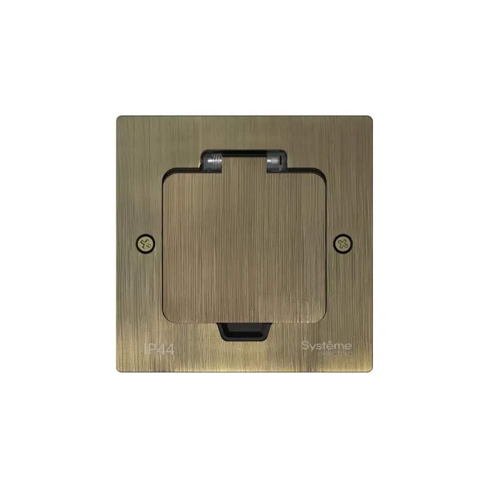 MultiDesk Лючок на 2 модуля IP44 с монтажной коробкой для стены, фальшпола, стола Античная ЛАТУНЬ, т