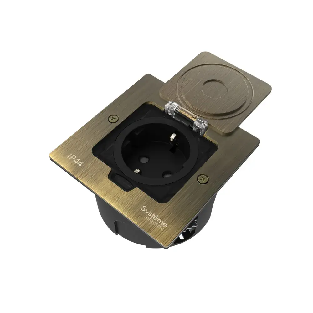 MultiDesk Лючок с розеткой 2К+З, 16А/250В, IP44 с монтажной коробкой для стены, фальшпола, стола Ант