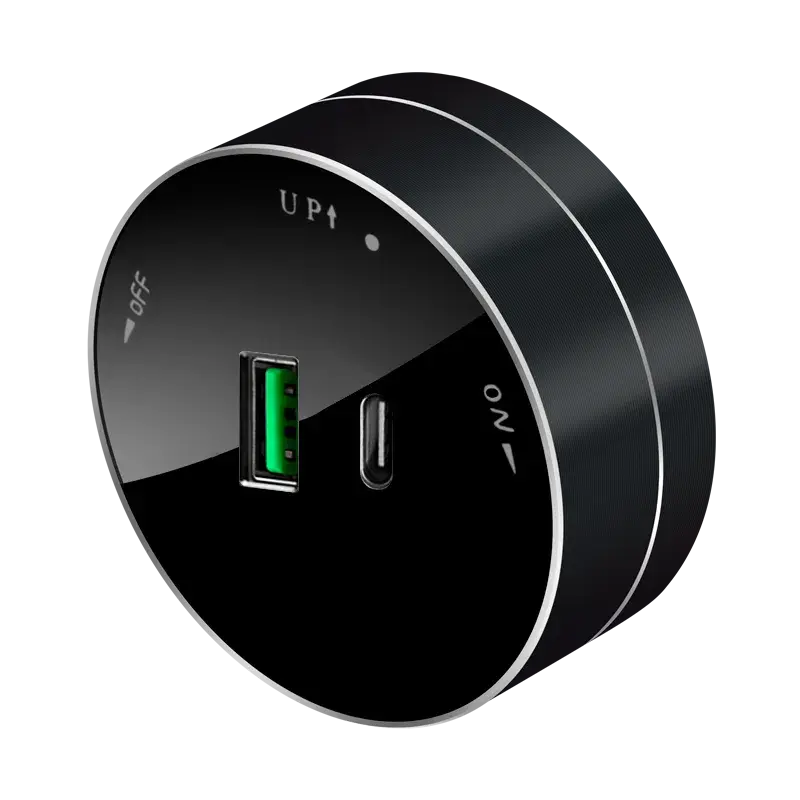 Розетка трековой системы MultiTrack (Systeme Electric) 2хUSB (тип А + тип С) 18 Вт, 5В/3А, 9В/2А, 12В/1.5А, цвет - антрацит. Устанавливается в шину MultiTrack. Быстрая и безопасная установка, не требующая привлечения специалиста: достаточно вставить розетку в шину и повернуть на 90 градусов до упора.