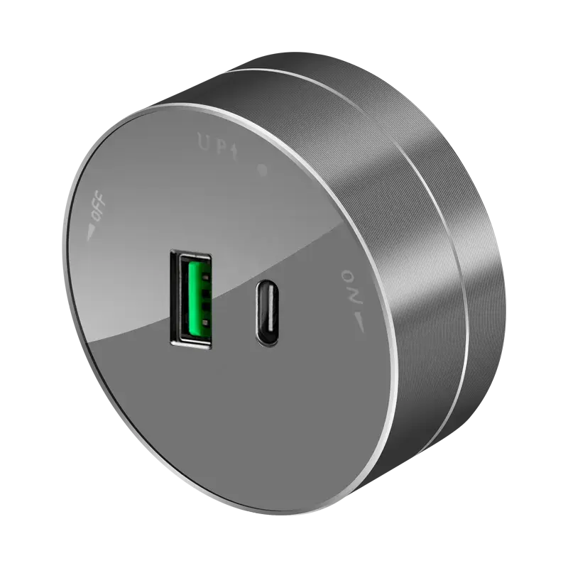 Розетка трековой системы MultiTrack (Systeme Electric) 2хUSB (тип А + тип С) 18 Вт, 5В/3А, 9В/2А, 12В/1.5А, цвет - графит. Устанавливается в шину MultiTrack. Быстрая и безопасная установка, не требующая привлечения специалиста: достаточно вставить розетку в шину и повернуть на 90 градусов до упора.