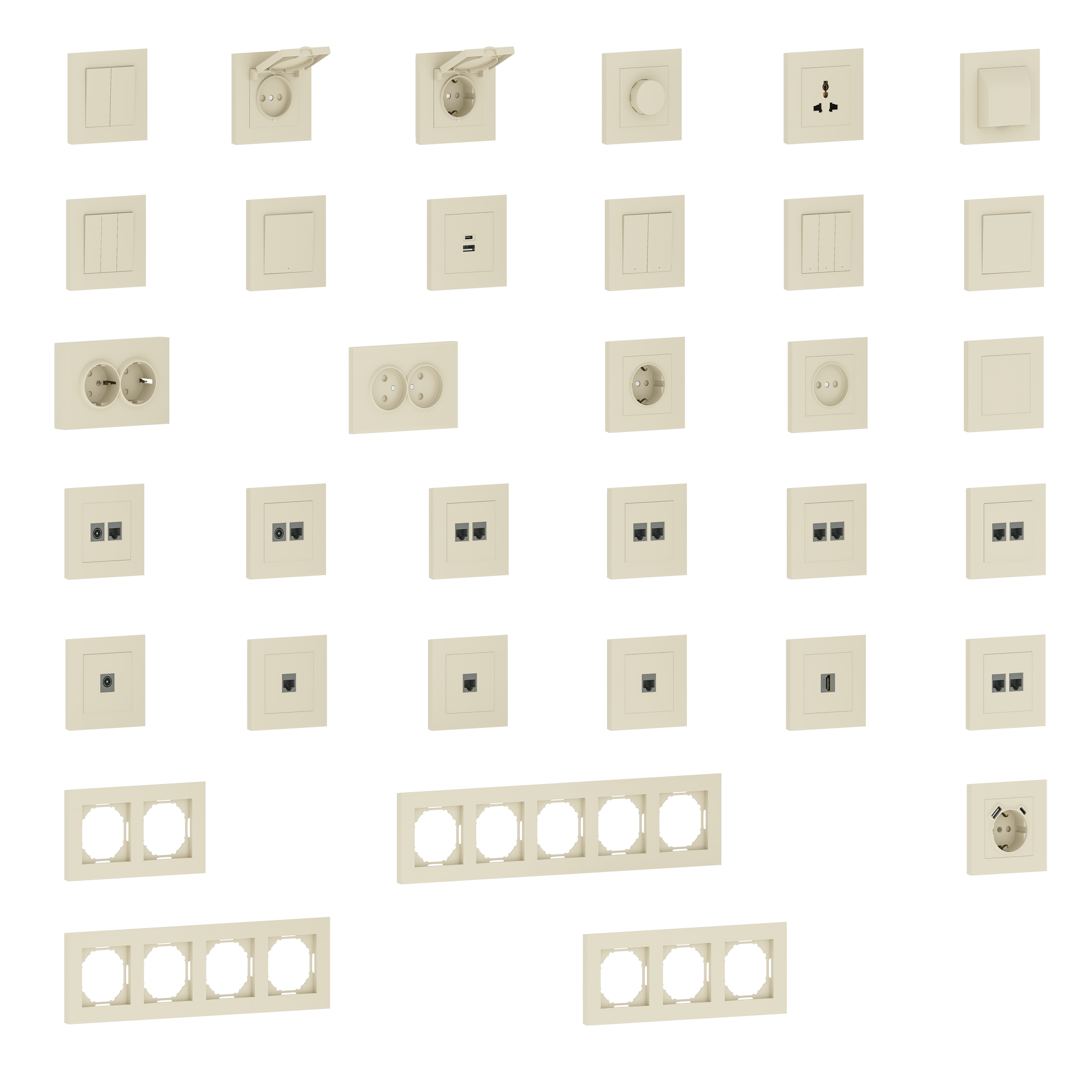 Donel A07 матовый кремовый накладка для розетки Schuko с зарядным устройством USB A+C, со шторками 16A 250 В~,серия DB