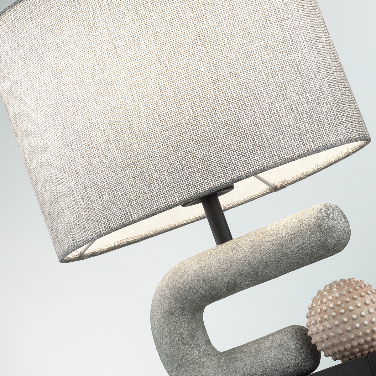 Линия светильников Bagel сочетает в себе природные цвета и поверхности. Мягкие оттенки камня, натуральные ткани и черный матовый металл создают ощущение комфорта и единения с природой. Декоративные элементы выполнены из высококачественного полирезина, имитирующего каменную поверхность. Льняные абажуры бежевого и серого цвета мягко рассеивают свет. Настольные лампы дополнены рассеивателями сверху, для наибольшего комфорта использования.
