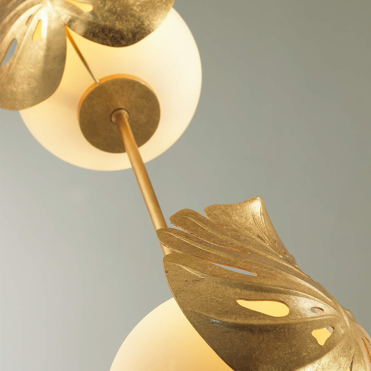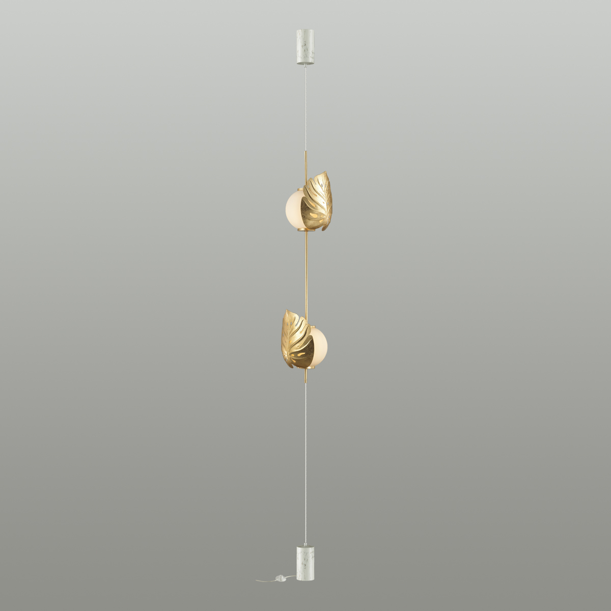 Линия Jungle выполнена в стиле эко-роскошь или эко-шик, для которых характерны природные мотивы и роскошное декорирование в виде золотого и серебряного покрытия. В качестве главного декоративного элемента в серии выступает стилизованный лист монстеры, покрытый золотым или серебряным фольгированием. Особое место в линии Jungle занимает натяжной торшер, при помощи которого можно сделать световой акцент, зонирование пространства, эффектное украшение и комфортное освещение интерьера одним светильником! Высоту торшера можно менять с помощью регулировки длины провода. Коммутацию торшера можно осуществлять как с потолка , так и вынести через нижнюю чашу провод с выключателем (оба варианта коммутации идут в комплекте).